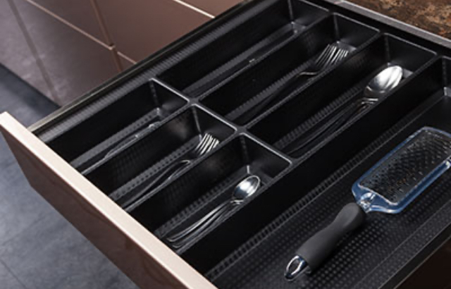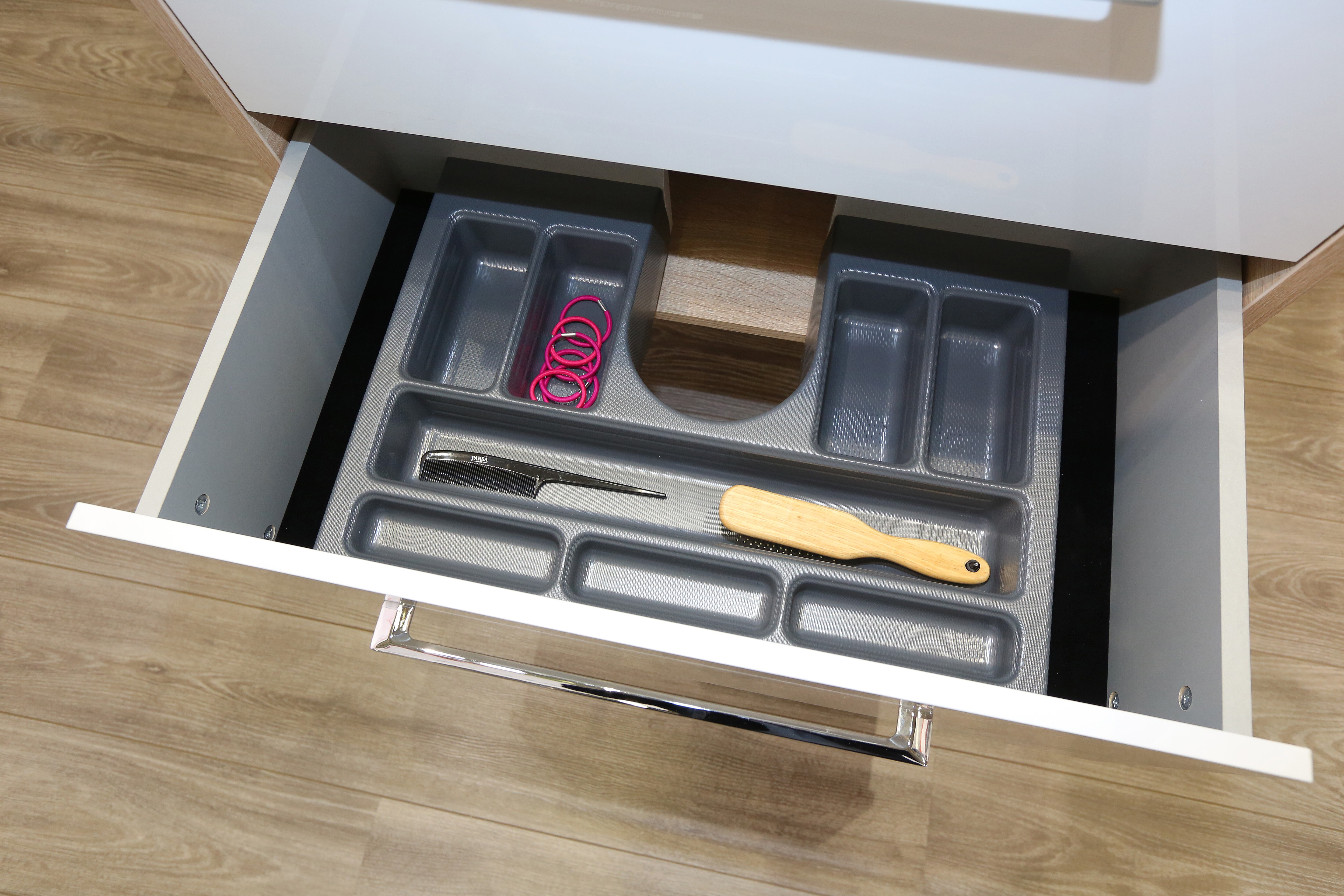 As Europe’s leading and largest manufacturer of precision-fitting plastic drawer inserts, we offer a variety of solutions for the kitchen, bathroom and office (KBO). Besides the inserts our portfolio includes further practical organisational solutions ranging from non-slip mats across under-sink protection to storage systems.